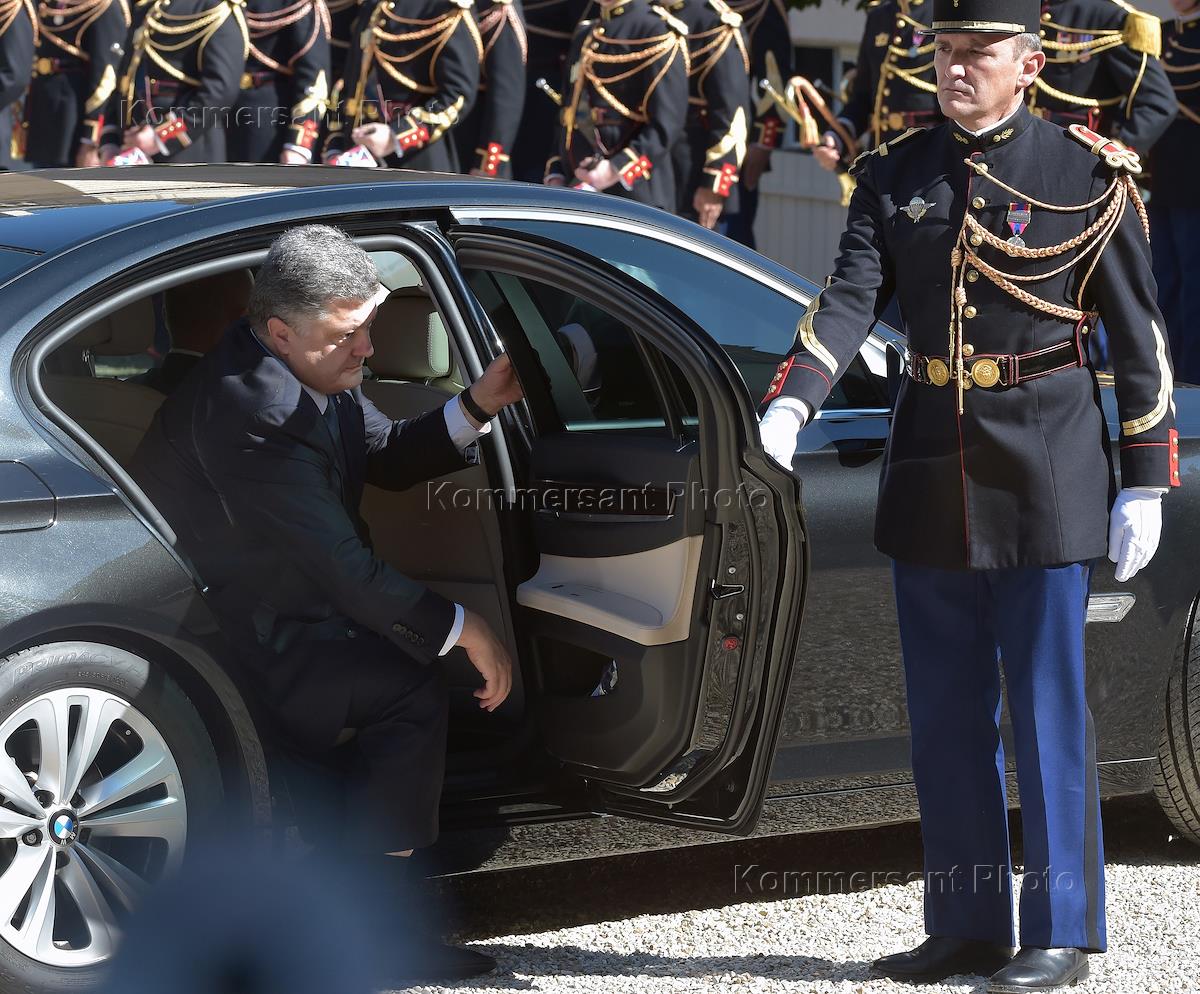 Визит президента России Владимира Путина во Францию. Переговоры лидеров стран "нормандской четверки". Президент Украины Петр Порошенко во время официальной церемонии встречи.