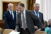 Заседание "О ходе реализации перечня поручений президента Российской Федерации по итогам заседания президиума Государственного совета Российской федерации от 17 июня 2015 года" прошло в Государственном антинаркотическом комитете России. Заместитель министра здравоохранения России Дмитрий Костенников (слева) и руководитель Федерального агентства по печати и массовым коммуникациям (ФАПМК) России Михаил Сеславинский (в центре) перед началом заседания.