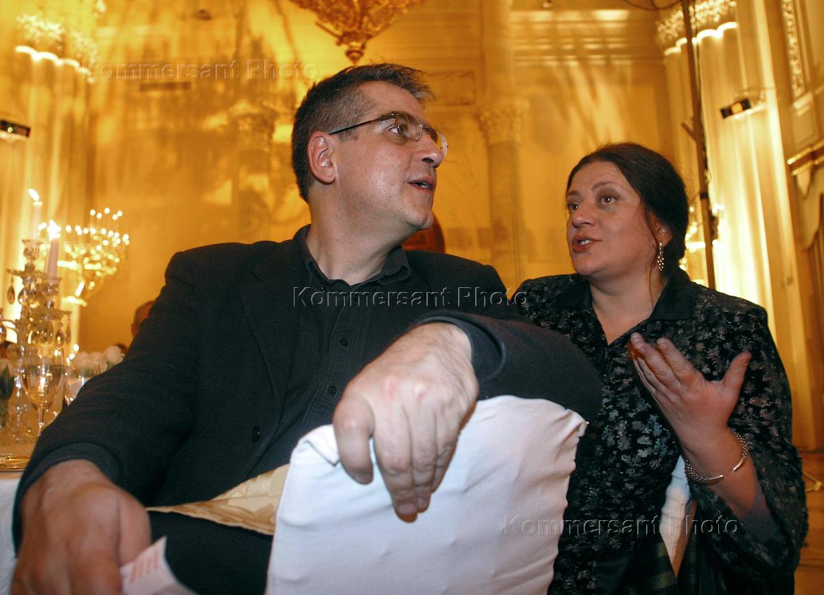 Members of the 'My Petersburg' literary awards jury writers Alexander Timofeyevsky (left) and Tatyana Tolstaya (right) take part in the awards ceremony.