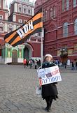 Жанровая фотография. Участница одиночного пикета с плакатом "Спасибо Путину!" на Манежной площади.