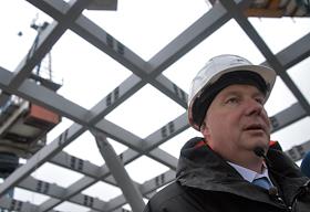 Генеральный директор компании-заказчика ЗАО "Башня "Федерация" Михаил Смирнов во время пресс-тура, посвященного окончанию монтажа верхней части "Башни Федерация" Московского международного делового центра "Москва-Сити".