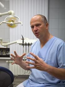 Генеральный директор стоматологического центра "Новель-дент" Модест Силин во время интервью.