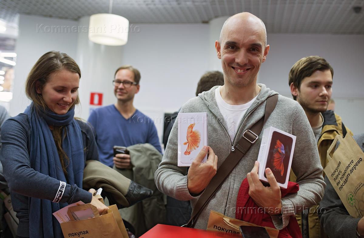 Покупатели во время старта продаж iPhone 6s и iPhone 6s Plus в магазине "М.Видео" в ТРЦ "Неглинная Плаза" на Трубной площади.