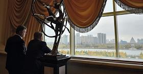 Президент Украины Петр Порошенко (справа) и президент Казахстана Нурсултан Назарбаев (слева) во время торжественной церемонии встречи.