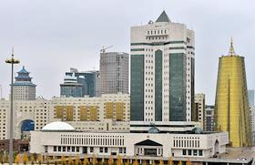 Виды Астаны. Государственные флаги Украины и Казахстана.