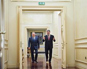 Президент Украины Петр Порошенко (слева) и президент Казахстана Нурсултан Назарбаев (справа) во время торжественной церемонии встречи.