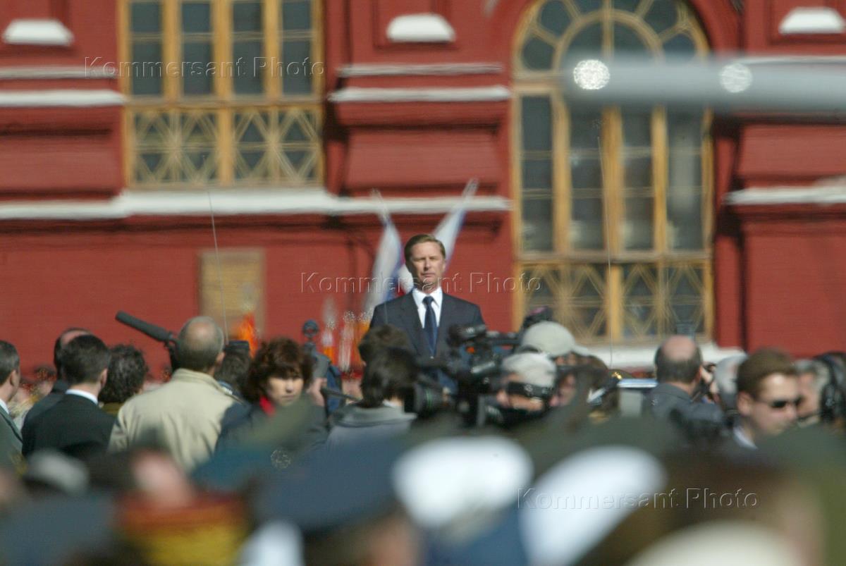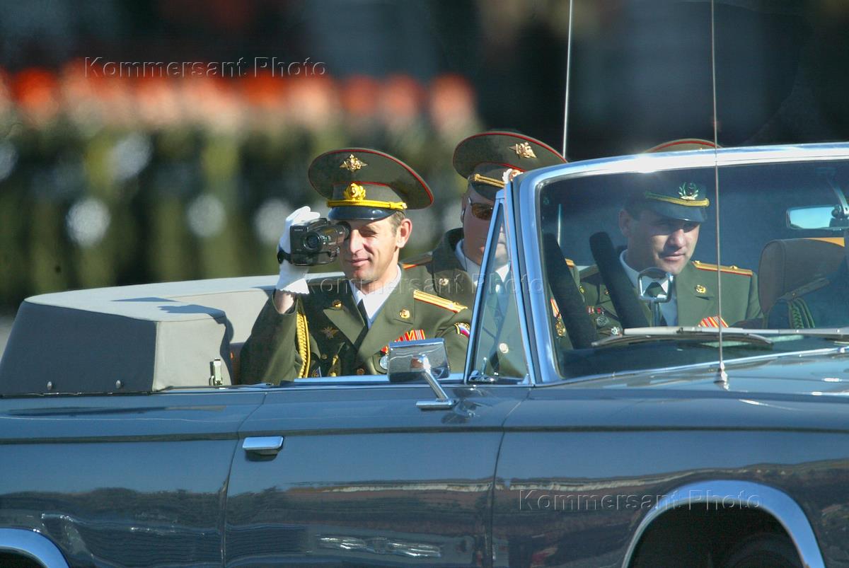 Министр обороны России Сергей Иванов на автомобиле принимает парад, посвященный 58-й годовщине Победы в Великой отечественной войны, на Красной площади.