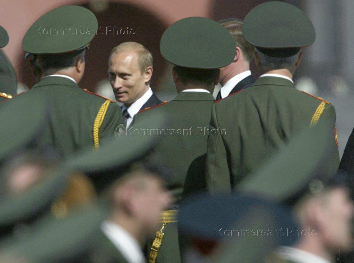 Президент России Владимир Путин во время Военного парада, посвященного 58-й годовщине Победы в Великой отечественной войны. Парад прошел на Красной площади.