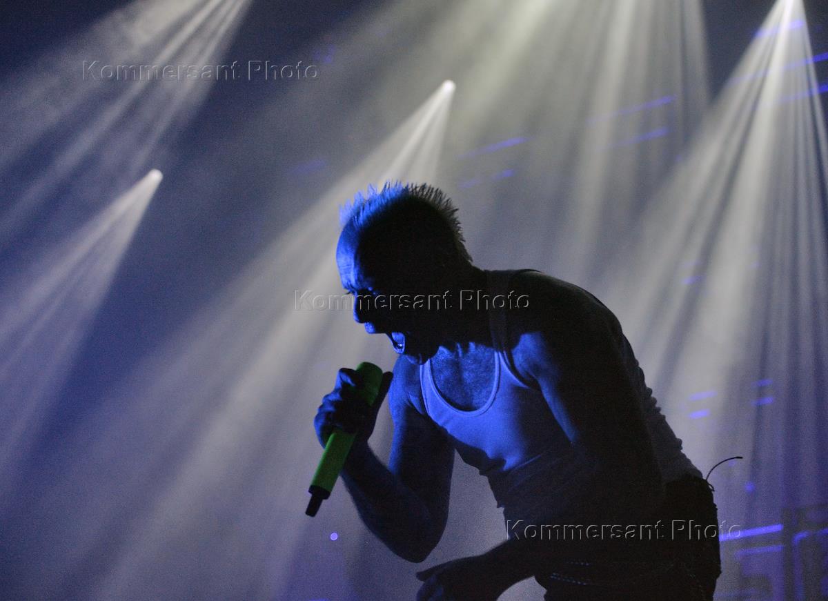 Солист группы The Prodigy Максим Реалити во время концерта группы в клубе Stadium Live.