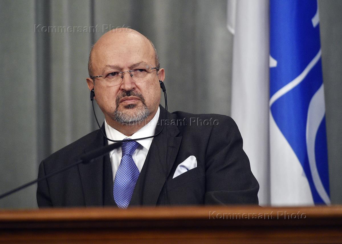 Генеральный секретарь Организации по безопасности и сотрудничеству в Европе (ОБСЕ) Ламберто Заньер во время встречи с министром иностранных дел России Сергеем Лавровым в Особняке МИД.