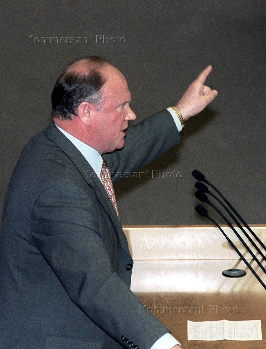 Left to right: Prime Minister Mikhail Kasyanov, Duma Speaker Gennady Seleznyov and Deputy Speaker Georgy Boos.