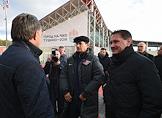 Слева направо: министр спорта России Виталий Мутко, главный тренер футбольной команды "Спартак" Дмитрий Аленичев и помощник главного тренера футбольной команды "Спартак" Егор Титов во время церемонии открытия памятника футболисту, бывшему нападающему ФК "Спартак" Федору Черенкову рядом со стадионом "Открытие Арена".