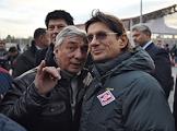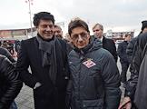 Бывший вратарь сборной команды СССР по футболу Ринат Дасаев (слева) и вице-президент нефтяной компании "Лукойл" Леонид Федун (справа) во время церемонии открытия памятника футболисту, бывшему нападающему ФК "Спартак" Федору Черенкову рядом со стадионом "Открытие Арена".