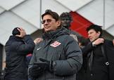 Главный тренер футбольной команды "Спартак" Дмитрий Аленичев (слева), помощником главного тренера футбольной команды "Спартак" Егор Титов (второй слева) и генеральный директор "Спартака" Сергей Родионов (справа) во время церемонии открытия памятника футболисту, бывшему нападающему ФК "Спартак" Федору Черенкову рядом со стадионом "Открытие Арена".