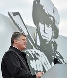 Президент Украины Петр Порошенко в День защитника Украины принял участие в торжественном открытии выставки военной техники "Сила непокоренных", которая стартовала на Михайловской площади в Киеве.