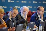 Слева направо: заместитель председателя Центральной избирательной комиссии (ЦИК) России Станислав Вавилов, председатель ЦИК России Владимир Чуров и секретарь ЦИК России Николай Конкин во время заседания Центральной избирательной комиссии России.