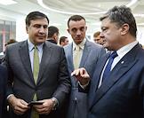 Визит президента Украины Петра Порошенко в Одессу. Председатель Одесской областной государственной администрации Михаил Саакашвили (слева) и президент Украины Петр Порошенко (справа) во время участия в церемонии открытия Центра обслуживания граждан Одесского городского совета.