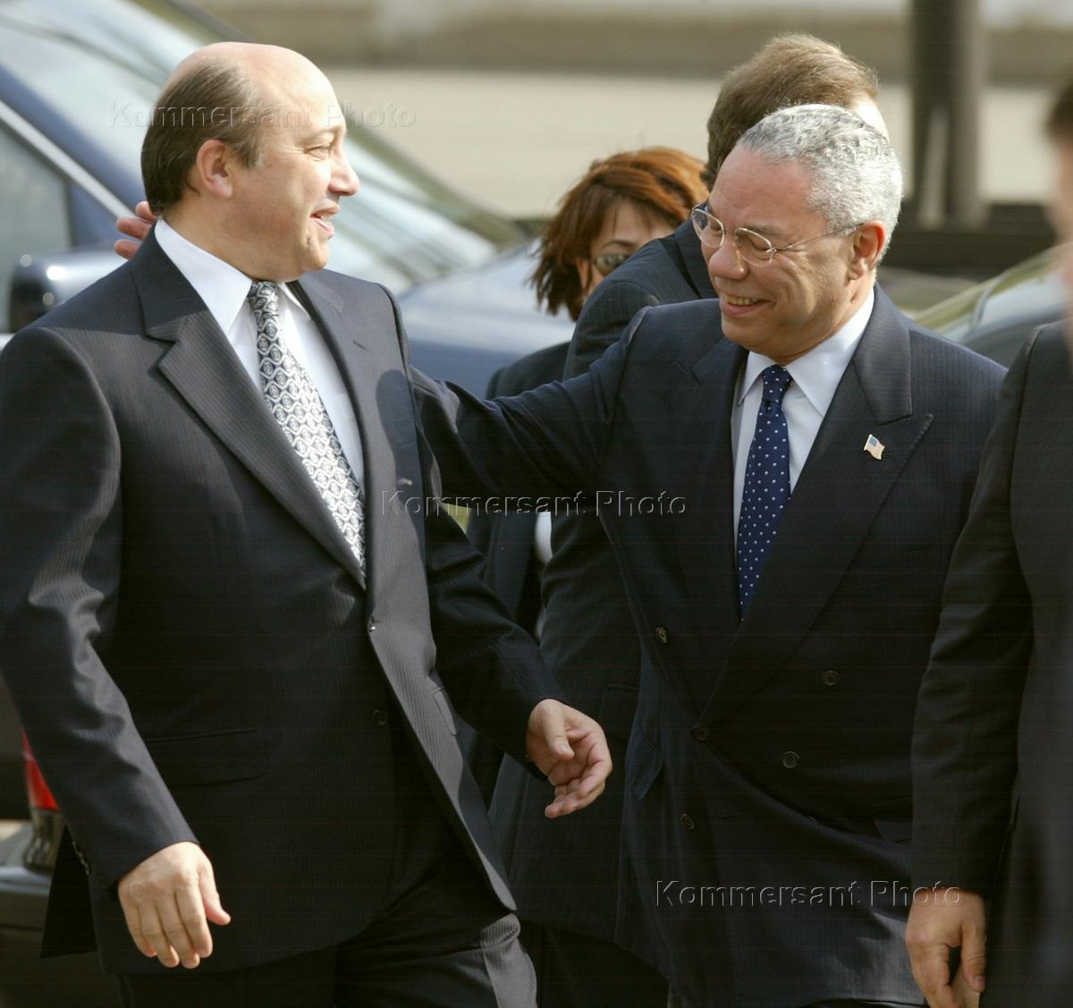 Russian Foreign MInister Igor Ivanov (left) meets his US counterpart - State Secretary Colin Powell (right) at the Moscow International Relations Institute (MGIMO) where the US statesman has arrived to deliver a lecture to the MGIMO students.