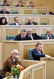 Председатель Союза кинематографистов России, режиссер Никита Михалков (слева) на заседании Совета Федерации России.