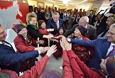 Председатель Совета Федерации России Валентина Матвиенко (в центре) с участницами ансамбля "Бурановские бабушки" в холле Совета Федерации России.