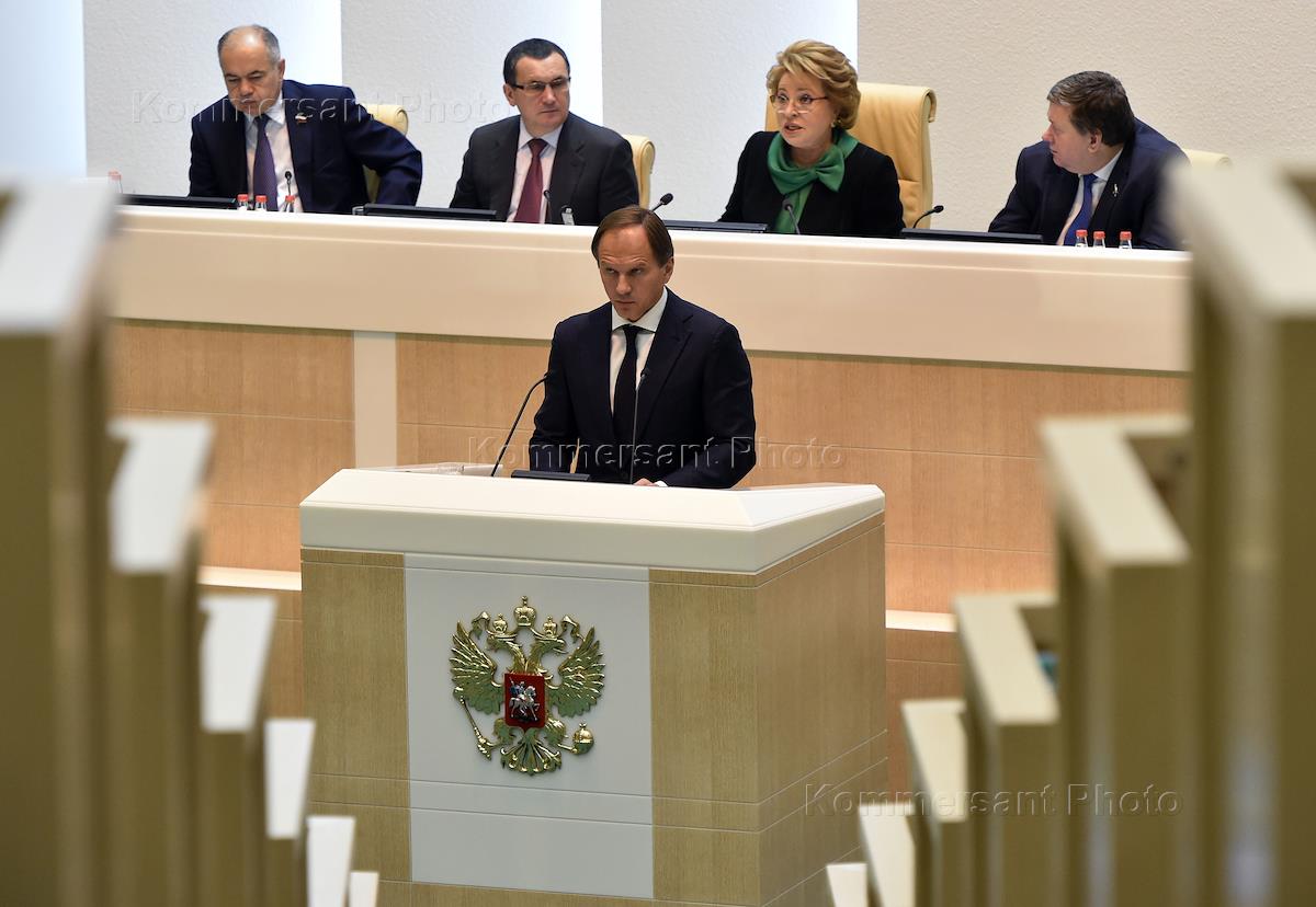 Слева направо: первый заместитель председателя Совета Федерации России Николай Федоров, министр России по делам Северного Кавказа Лев Кузнецов, председатель Совета Федерации России Валентина Матвиенко на заседании Совета Федерации России.