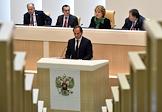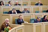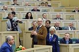 Председатель Союза кинематографистов России, режиссер Никита Михалков (в центре) на заседании Совета Федерации России.