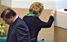 Председатель Совета Федерации России Валентина Матвиенко (справа) на заседании Совета Федерации России.