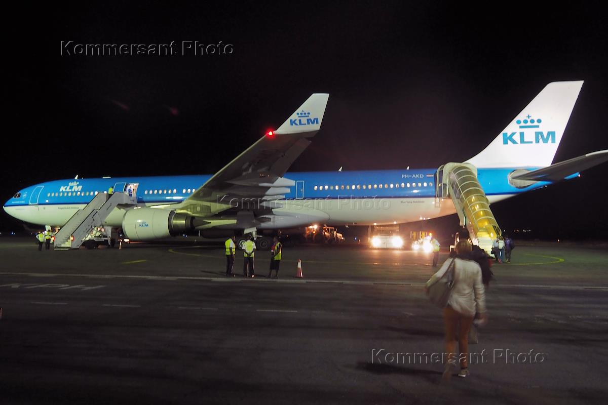 Международный аэропорт "Килиманджаро". Самолет Боинг-777 голландской авиакомпании KLM на летном поле.