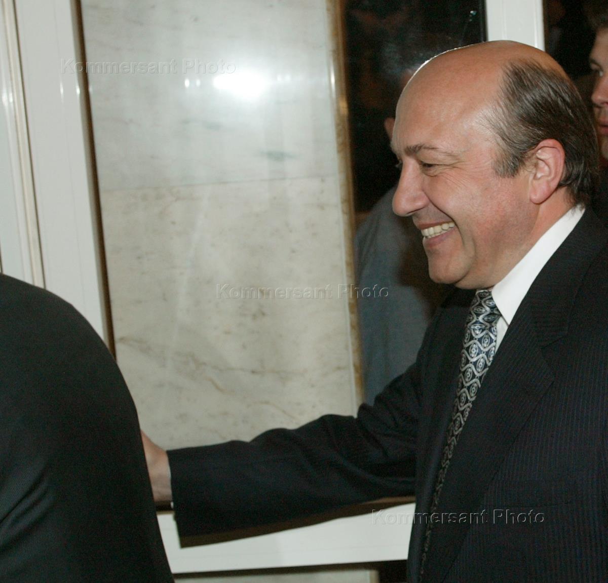 Russian Defence Minister Sergey Ivanov is interviewed in the lobby of the State Duma.