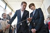 Двукратная олимпийская чемпионка по фехтованию Карина Азнавурян (слева) и президент Международного олимпийского комитета Томас Бах (справа) во время мероприятий спортивного праздника в рамках спортивно-образовательного проекта Олимпийского комитета России "Олимпийский патруль". Праздник прошел в Московском дворце пионеров.