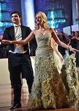 V Бал Дебютанток журнала Tatler пршел в Колонном зале Дома Союзов. Дочь модельера Валентина Юдашкина Галина с мужем Петром Максаковым во время бала.