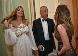 V Бал Дебютанток журнала Tatler пршел в Колонном зале Дома Союзов. Дочь пресс-секретаря президента России Дмитрия Пескова Елизавета Пескова (в центре) с женихом Юрием Мещеряковым (справа) и мамой Екатериной (слева) во время бала.