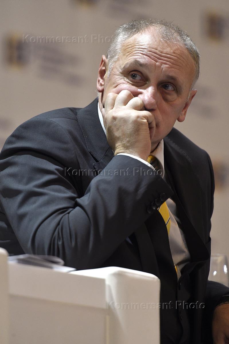 Гайдаровские чтения "Изучая настоящее, проектируем будущее", посвященные 25-летию Института Гайдара, прошли в "Президент Отеле". Заместитель председателя Внешэкономбанка (главный экономист) - член правления Андрей Клепач во время чтений.