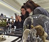 Посетители на выставке клатчей Alexander McQueen, в Третьяковском проезде.