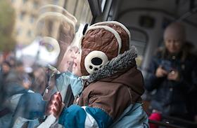 Подросток на праздновании дня московского троллейбуса, посвященного 82-летию этого вида городского транспорта.
