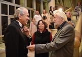 Слева направо: глава Комитета по этике РФС Павел Бородин, актер Валентин Гафт на творческом вечере "Территория любви. Сентиментальное путешествие по фильмам Никиты Михалкова через музыку Эдуарда Артемьева" в Московском международном Доме музыки.