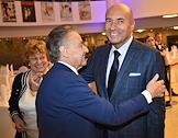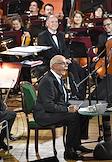 Композитор Игорь Крутой (слева) и поэт Андрей Дементьев (справа) на творческом вечере "Территория любви. Сентиментальное путешествие по фильмам Никиты Михалкова через музыку Эдуарда Артемьева" в Московском международном Доме музыки.