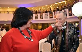Певица, руководитель театра "Русская песня" Надежда Бабкина (cлева) и модельер Вячеслав Зайцев (справа) на творческом вечере "Территория любви. Сентиментальное путешествие по фильмам Никиты Михалкова через музыку Эдуарда Артемьева" в Московском международном Доме музыки.