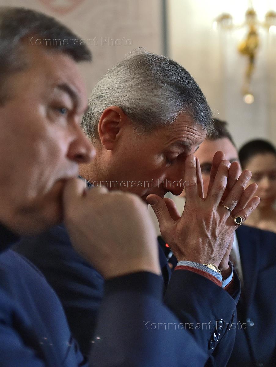 Представление нового руководителя балетной труппы Государственного академического Большого театра (ГАБТ). Генеральный директор ГАБТ Владимир Урин (слева) и новый руководитель балетной труппы ГАБТ Махар Вазиев (справа) во время брифинга.