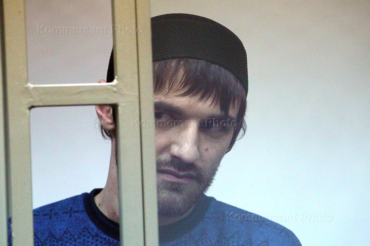 Обвиняемый в совершении тяжких преступлений, связанных с участием в массовых беспорядках, прохождением обучения в целях осуществления террористической деятельности, участием на территории Сирии в незаконном вооруженном формировании, а также незаконным оборотом огнестрельного оружия и боеприпасов Гаджи Магомедов (слева) во время рассмотрения уголовного дела в Северо-Кавказском окружном военном суде.
