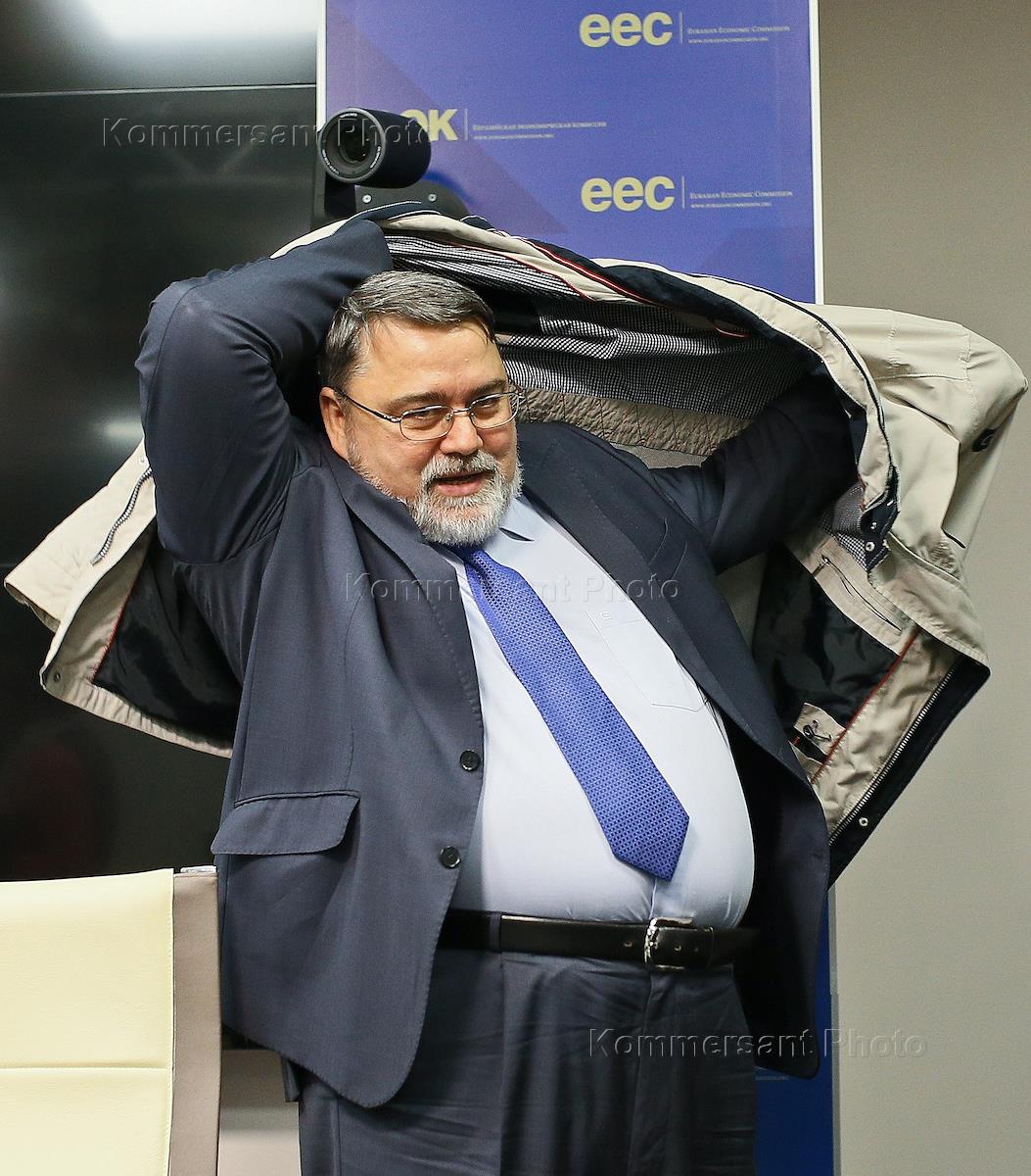 Член Коллегии (министра) по конкуренции и антимонопольному регулированию Евразийской экономической комиссии (ЕЭК) Нурлан Алдабергенов во время пресс-конференции по результатам расширенного заседания подкомитета по конкуренции и антимонопольному регулированию Консультативного комитета по конкуренции и антимонопольному регулированию, ценовому регулированию и государственным (муниципальным) закупкам.