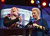 XVI Церемония вручения независимой музыкальной премии "Золотая горгулья". Певицы Нино Катамадзе (слева) и Теона Контридзе (справа) на церемонии в клубе "16 тонн".