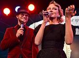 XVI Церемония вручения независимой музыкальной премии "Золотая горгулья". Ведущие церемонии телеведущий Дмитрий Хрусталев (слева) и актриса, сценарист, режиссер Рената Литвинова (справа) в клубе "16 тонн".