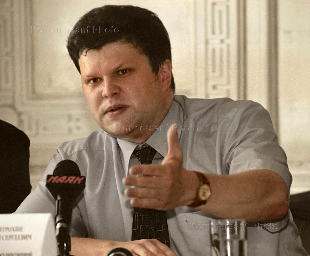 Депутат Государственной Думы, член фракции "Яблоко" Сергей Митрохин во время пресс-конференции на тему: "Первый этап реформы энергетики: готовность и последствия". Пресс-конференция состоялась в мраморном зале Центрального Дома журналиста.