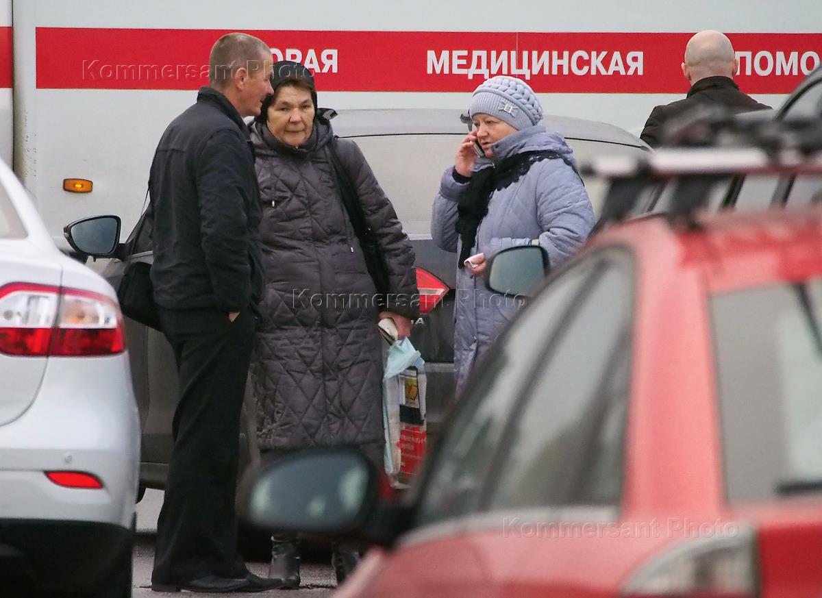 Родственники погибших в авиакатастрофе самолета Airbus-321 авиакомпании "Когалымавиа", выполнявшего рейс 9268 Шарм эш-Шейх — Санкт-Петербург, у крематория ГУП "Ритуальные услуги" Санкт-Петербурга, где будет проводится опознание погибших.