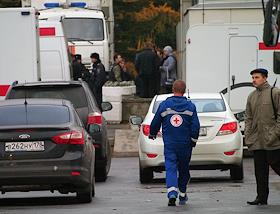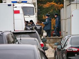 Сотрудники МЧС у здания крематория ГУП "Ритуальные услуги" Санкт-Петербурга, где проводится опознание погибших в катастрофе самолета Airbus-321 авиакомпании "Когалымавиа", выполнявшего рейс 9268 Шарм эш-Шейх — Санкт-Петербург.