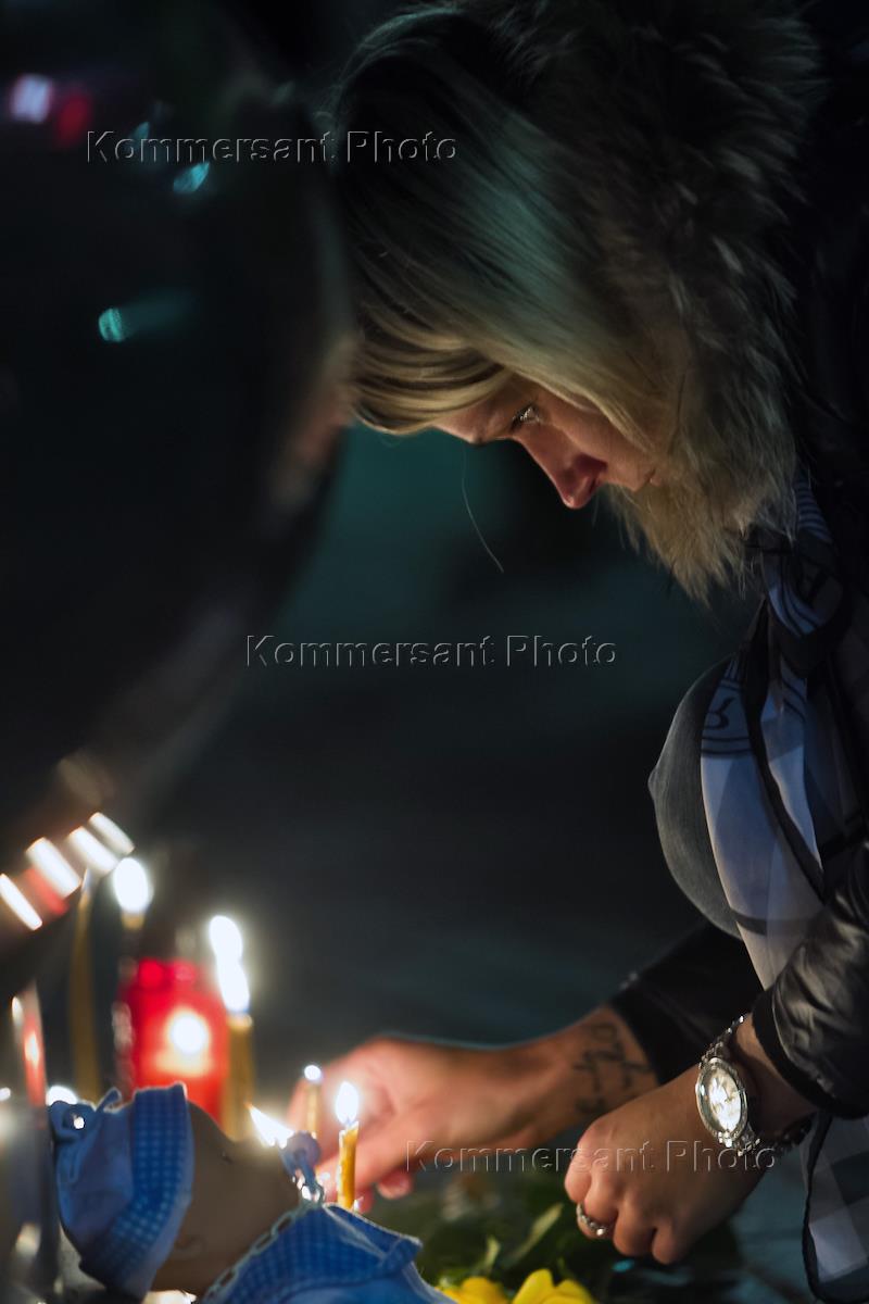 Цветы, свечи в память о жертвах катастрофы самолета Airbus A321 на центральной площади Победы города Калининграда. Самолет Airbus A321 авиакомпании "Когалымавиа", выполнявший рейс Шарм эш-Шейх - Санкт-Петербург, на борту которого находились 224 человека, включая членов экипажа, разбился в 100 км от Эль-Ариша на севере Синайского полуострова.