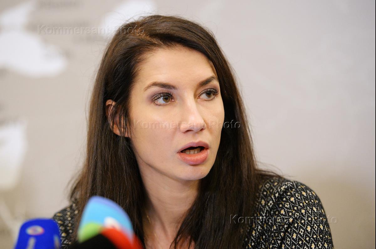 Пресс-конференция с представителями авиакомпании "Когалымавиа" в офисе авиакомпании в бизнес-центре "Золотое кольцо". Представитель холдинга TH&C Оксана Головина во время пресс-конференции.