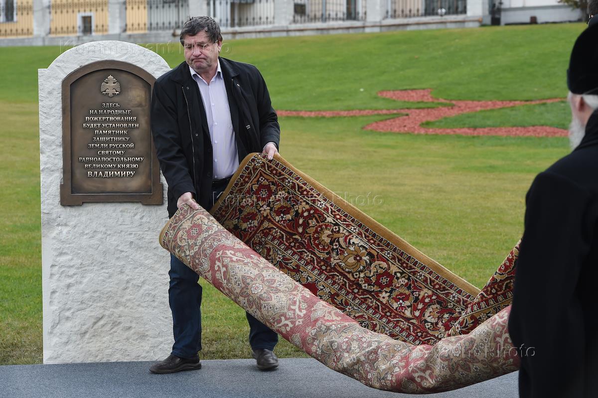 Церемония открытия закладного камня на месте установки памятника святому равноапостольному князю Владимиру прошла на Боровицкой площади.