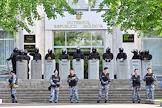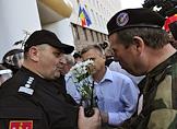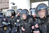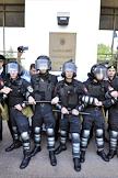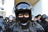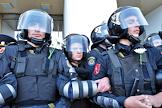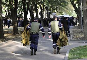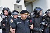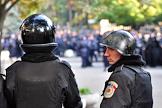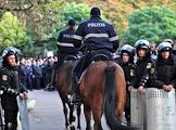 Антиправительственный митинг в центре Кишинева. Сотрудники полиции и правоохранительных органов во время дежурства и оцепления места проведения митинга.